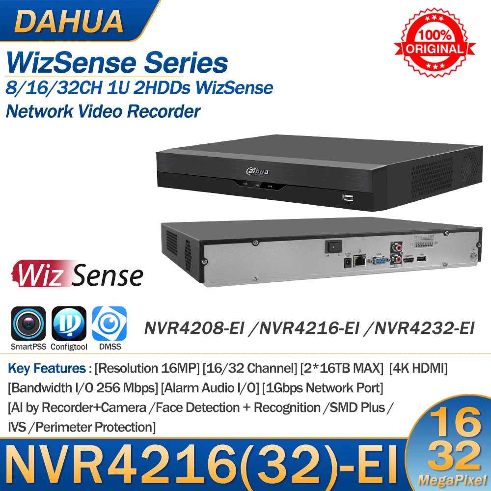 Dahua NVR4216-EI NVR4232-EI NVR 16/32CH 1U 2HDDs WizSense Network Video Recorder AI Smart Human Vehicle Face SMD Plus 16MP NVR